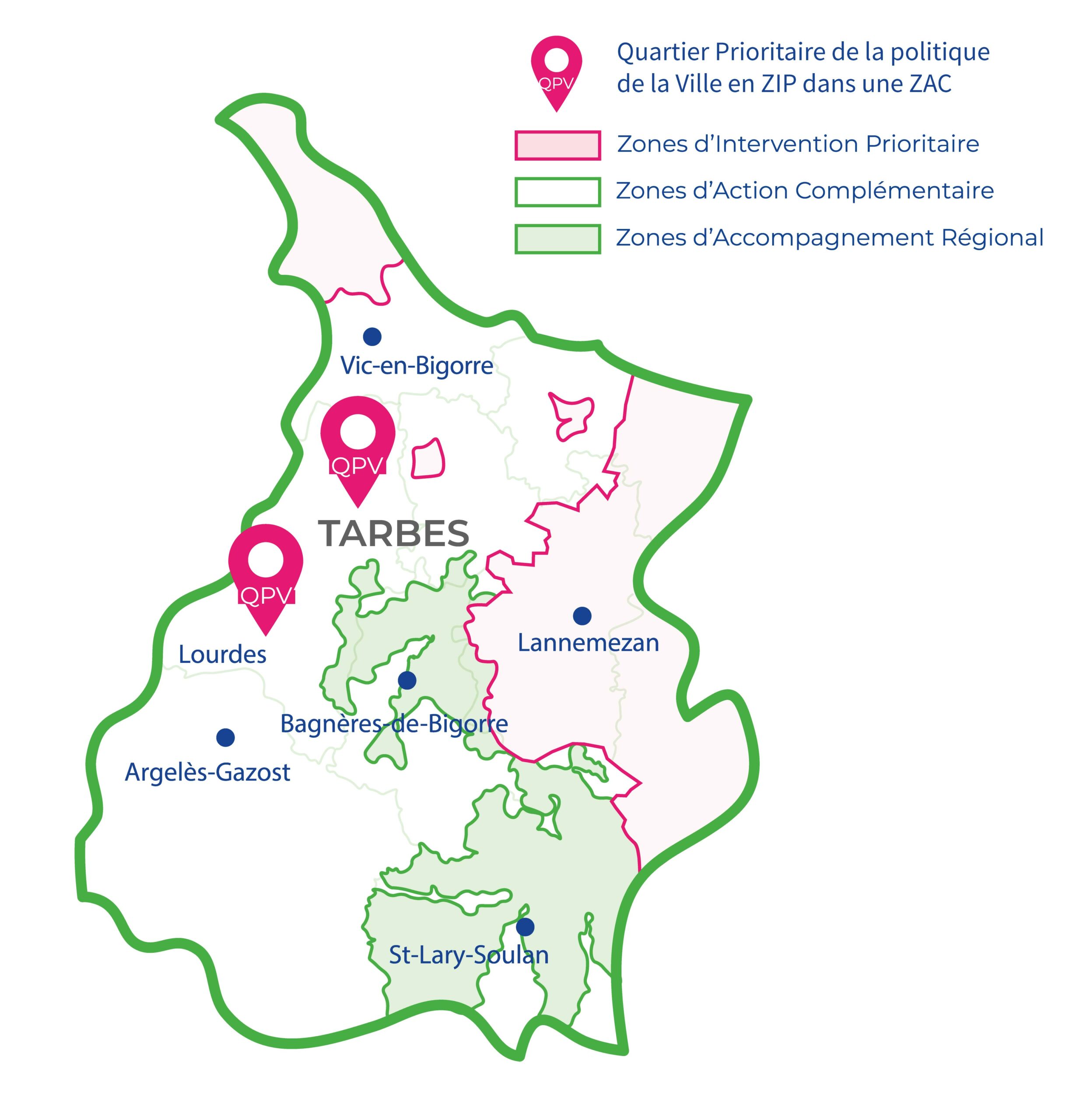 - Les Zones d’Appui Régional (ZAR) : ce sont par définition les zones qui ne sont ni en ZIP, ni en ZAC.